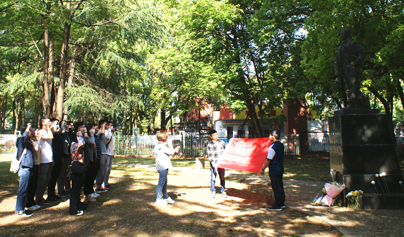 “我志愿加入中國共產(chǎn)主義青年團,堅決擁護中國共產(chǎn)黨的領導……”在青少年宮陳延年雕像前,團員青年佩戴團徽,排著整齊的隊列,面對鮮紅的團旗,緊握右拳,鏗鏘有力地重溫入團誓詞。