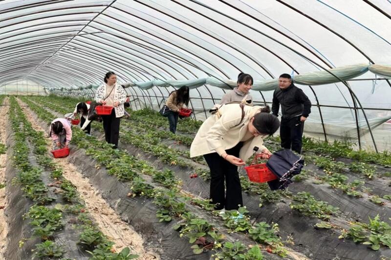在生機(jī)勃勃的草莓棚里,一顆顆草莓在綠葉的襯托下鮮艷欲滴,大家小心翼翼地行走在草莓土壟之間,一邊采摘,一邊分享自己生活和工作中的樂事?,F(xiàn)場歡聲笑語不斷,大家在歡愉的氛圍中結(jié)束了“莓”好時(shí)光。