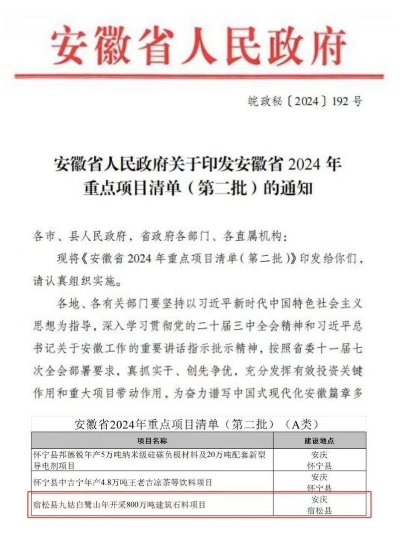 近日,安徽省人民政府公布了2024年重點(diǎn)項(xiàng)目清單(第二批),宿松縣九姑白鷺山礦項(xiàng)目成功入選,為該批次我市僅有三個(gè)重點(diǎn)A類項(xiàng)目之一。
